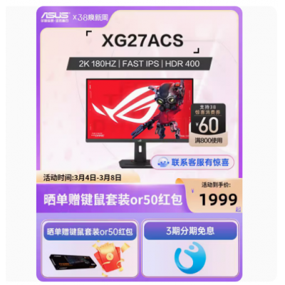 首页 > 数码 > 显示器 > ROG XG27ACS绝杀27青春版 显示器电竞180Hz 27英寸2k显示屏幕电脑